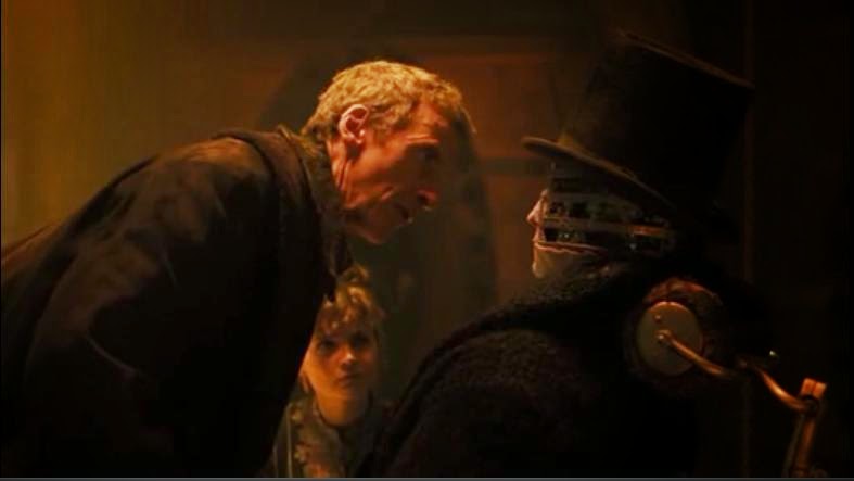 The harsh alienness never takes away from the other Doctorish traits. He opens a door, stops, says, "Door, boring, not me," then closes the door and goes out the window. His strangeness and insulting nature never bury the Doctor's essential compassion, nor the way he turns cold to true villains. ("Those people down there, they're never small to me. Don't make assumptions about how far I will go to protect them, because I've already gone a very long way.") And certainly his intelligence is undeniable; there's a lovely tang of suspense when he tells Clara and the Paternoster Gang that the mystery of the incinerated T-Rex in 19th Century London is neither who nor how. And it's almost chilling when he reveals the answer: "Have there been any similar murders?"
